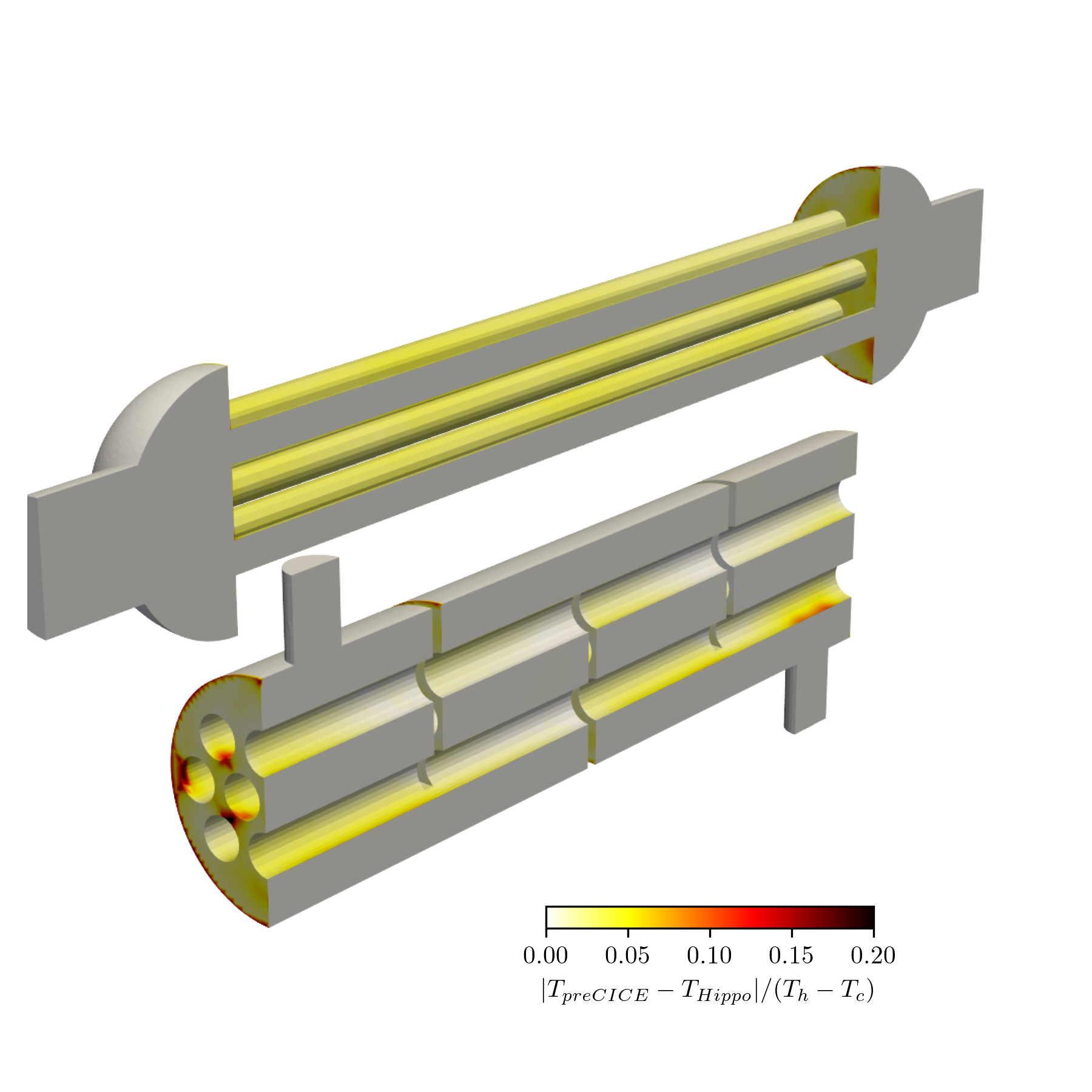 download_meshes.sh: Downloads OpenFOAM meshes from the preCICE tutorialsolid.exo: mesh for the solid region in the Exodus II file formatfluid-inner-openfoam: OpenFOAM case directory for the tube regionfluid-outer-openfoam: OpenFOAM case directory for the shell regionsolid.i: MOOSE input file for the solid region subject to heat conduction.inner.i: Hippo input file for the tube region.outer.i: Hippo input file for the shell region.clean.sh: cleans case directories.post.py: python script for postprocessing the results